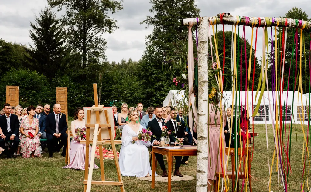 Plenerowe ceremonie są uzależnione od warunków atmosferycznych. Warto przygotować namiot, zadaszenie lub mieć alternatywną lokalizację w razie deszczu.