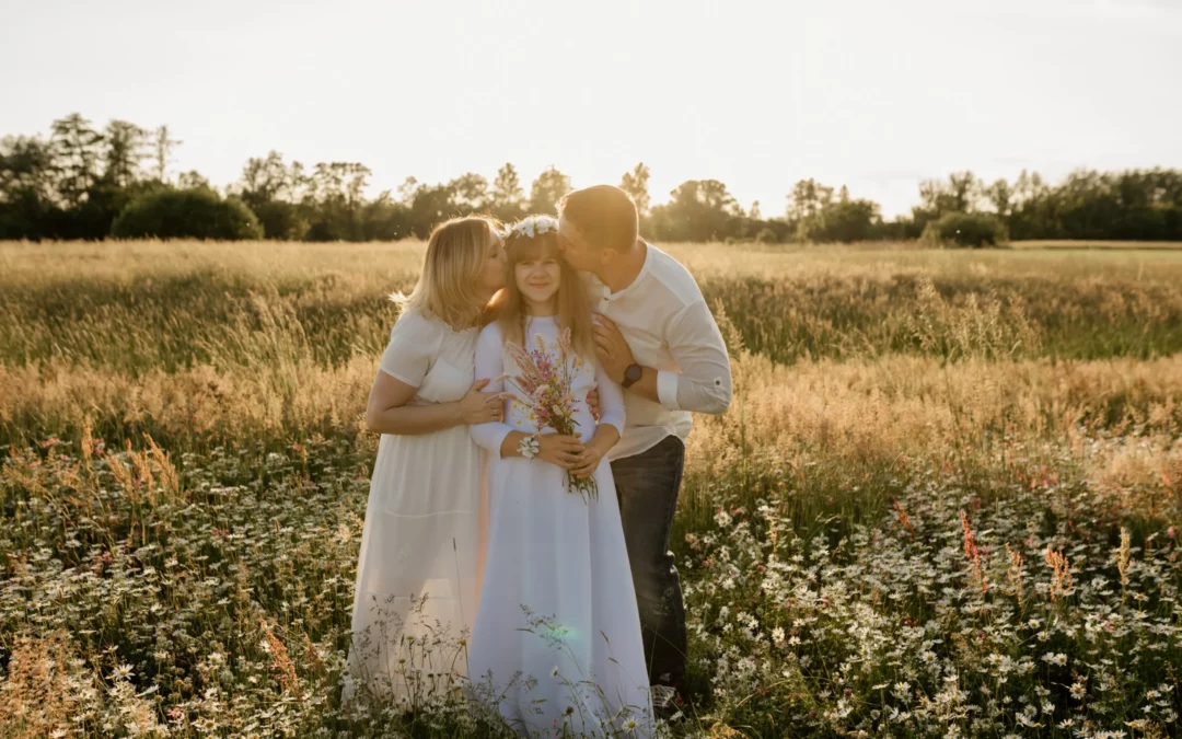 Sesja komunijna może mieć dwie odsłony – bardziej tradycyjną, z książeczką do nabożeństwa i różańcem, lub bardziej swobodną, z ujęciami pełnymi lekkości i radości. Wiem, że dzieci czują się najlepiej w naturalnych kadrach, dlatego często proponuję sesję „na luzie” – wirująca sukienka, alby w ruchu, spontaniczne uśmiechy. Oczywiście, możemy podzielić sesję na dwie części: część w stylizacji komunijnej oraz część bardziej swobodną.