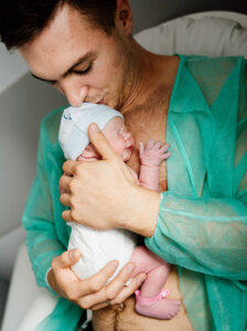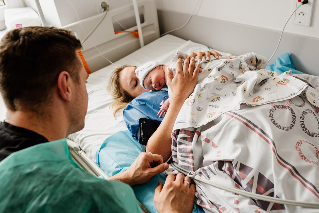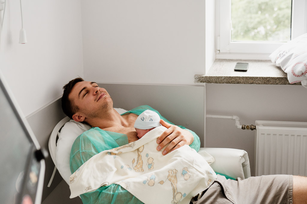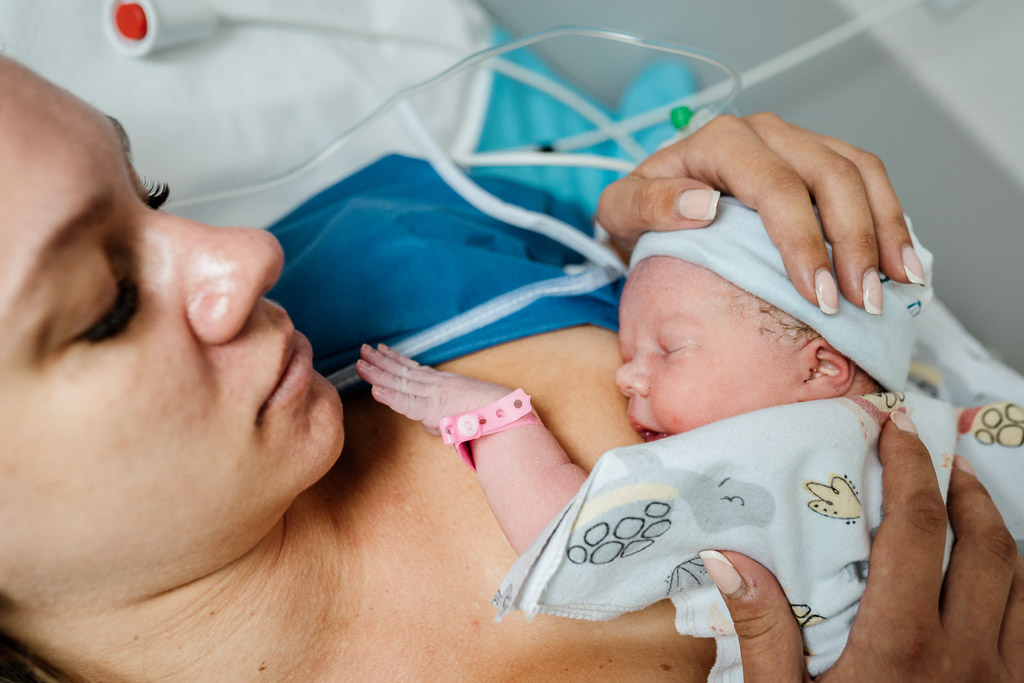 ✔ Pierwsze spotkanie z dzieckiem – moment, gdy maleństwo zostaje położone na piersi mamy, ich pierwszy kontakt skóra do skóry.