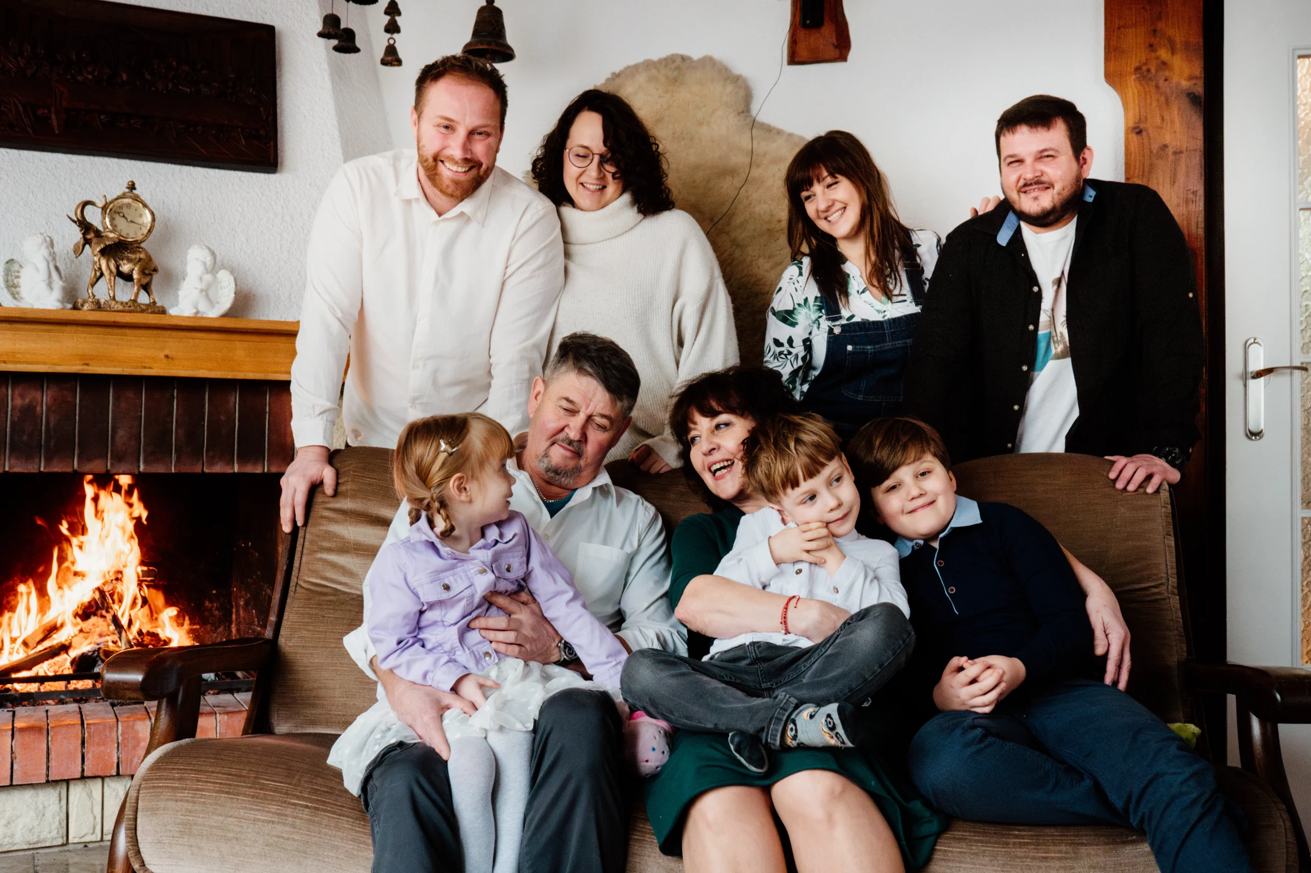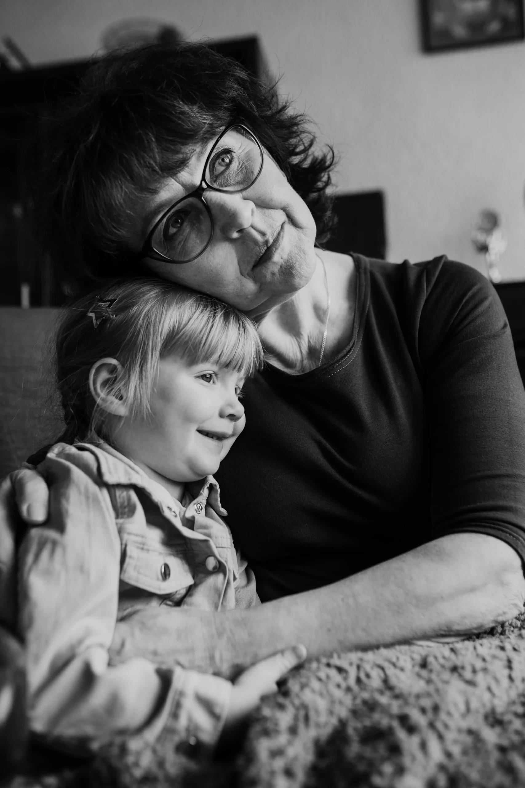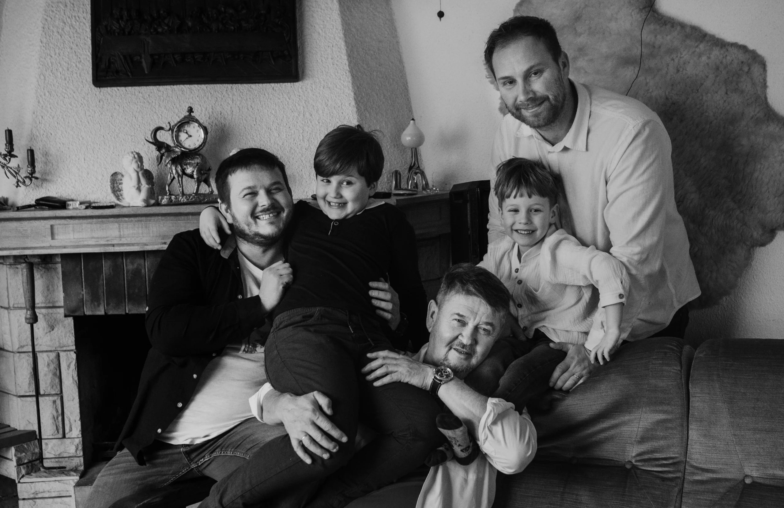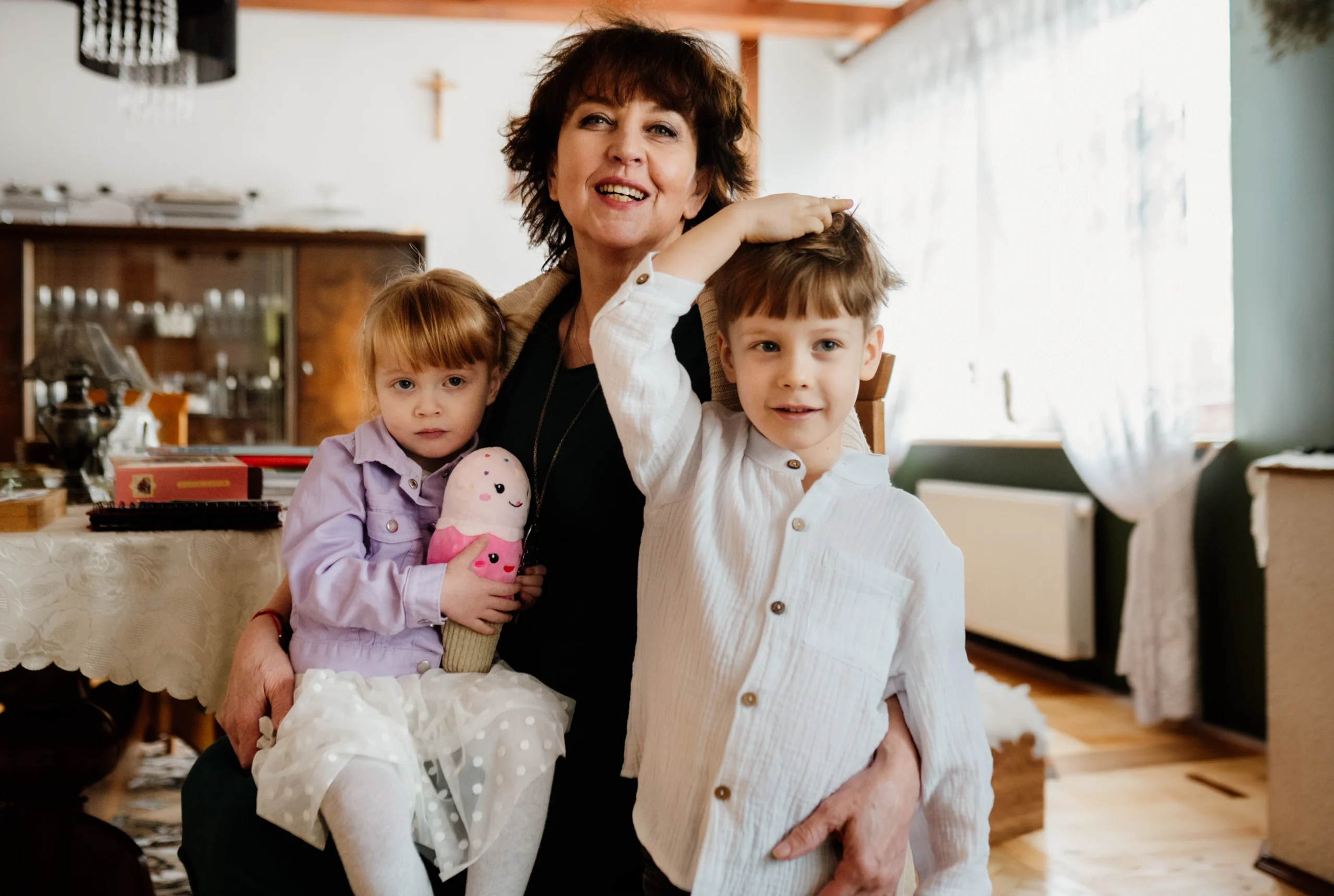 Naturalna, ciepła atmosfera. Zdjęcia w ulubionych fotelach, wnuki bawiące się na dywanie, wspólne kadry w kuchni — wszystko to tworzy wyjątkowy, autentyczny reportaż rodzinny.